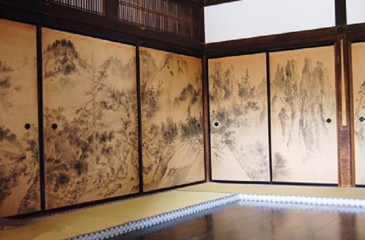 ↓方丈内の襖絵は瑞峯の院名にちなんで金剛山を写した大作とされています