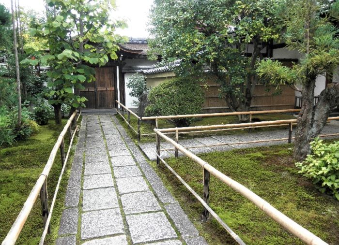 ↓表門を入ったところ 竹の結界に縁取られた石畳が続き折れ曲がるたびに変わる景色が見られる参道です