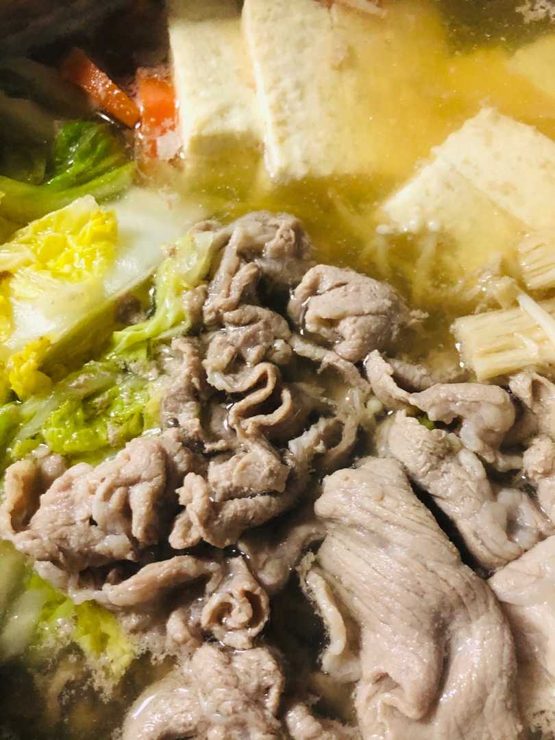 豚肉のしゃぶしゃぶ用を仕上げに入れてみた。白菜は多め、えのき茸と人参、豆腐入りの鶏ダシの鍋。あとは、マカロニサラダとカツオのタタキ自家製カブの漬物を食べた