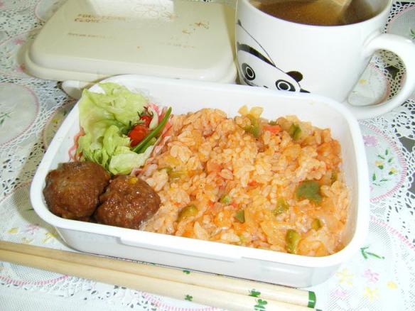 ♪ケチャップライス(ハインツのケチャップ、玉葱、ピーマン、ご飯)♪ミートボール♪サラダ(レタス、ミニトマト)♪オニオンスープ大好きなハインツのケチャップ使いました玉葱とピーマンを炒めて、ハインツのケチャップで味付けをして具と熱々に炒めます。そこで火を止めて、暖かいご飯を入れて混ぜ込むのがふくふく流です。火と止めてから、ご飯を入れるとパラっと仕上がるんですヨ♪何故か理由はわからないのですがご飯を入れてから更に加熱すると、ふくふくの場合ご飯の塊ができてしまうんですなので、火を止めてから混ぜる方式を採用(?)しています。やっぱりハインツのケチャップは美味しいデス。大満足のお昼ご飯でした
