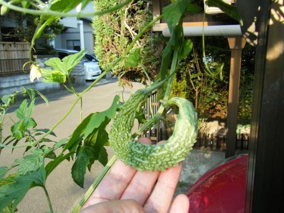 我が家のチビゴーヤです。ふく母が「今年は収穫ができないのかなぁ」と悲しそうな顔をしていたのですが、お盆の日照と蜂が頑張って受粉してくれたお陰でちょっとのんびりなのですがゴーヤが成長していま~す。とはいってもこのようなチビゴーヤです。この他にも数本見つけることがでいました☆ふく母も大喜びですお店で売っているような綺麗なゴーヤではないのですが。。。小さくても曲がっていても我が家の子はやっぱり愛おしいですネ♪毎朝、ななと「大きくなってるかなぁ?」と見るのが最近の日課です