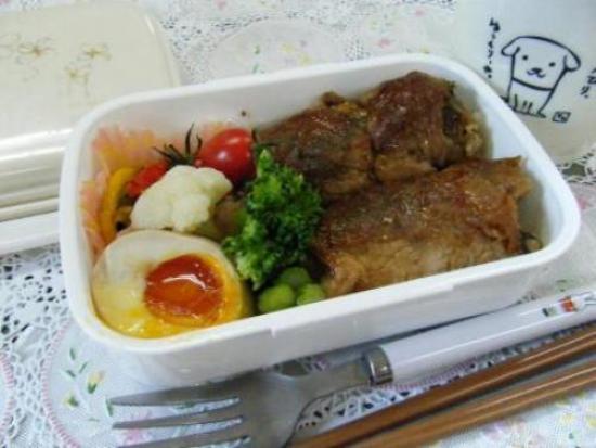 ♪豚肉おにぎり(豚肉、青シソ、ユカリご飯、すき焼きのタレ)♪温野菜(カリフラワー、ブロッコリ、アスバラ)♪半熟のゆで卵♪カラフル野菜のマリネ(パプリカ、胡瓜、ミニトマト)先週、増えてしまった2kg!なんとか減らすことができました♪嬉しいです今日は、ちょっとお祝いおにぎりにしました。初挑戦の肉おにぎりです。牛肉で巻くのが一般的のようですが、ふくふくはちょっと牛肉が苦手です。なので!大好きな豚肉でチャレンジしました。難しいかなぁと思ったのですが、結構簡単☆ご飯を生の豚肉に直接巻き込むのは、ちょっと怖かったので豚肉の上に青シソを敷いてその中にご飯を巻き込みました。焼くときにお肉の繋ぎ目の部分を先に焼いて固めるのがポイントです。この部分を先に焼かないと、お肉が縮んでしまってボロボロとご飯がこぼれてきてしまいます。後は、ゆっくりと中火でお肉に火を通して仕上げにすき焼きのタレをジュッと絡めて出来上がりです。初めてでちょっと不恰好でしたが、とっても美味しかったです。やっぱりお肉って美味しいなぁとつくづく味わって食べたお昼ご飯でした