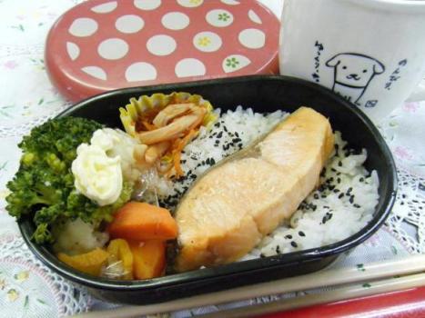 ♪肉厚な鮭♪イカ人参♪ブロッコリーとカリフラワー♪人参とジャガイモの煮物♪タクアン鮭は昨夜の晩御飯のときに多めに焼きました♪味付け無しの生鮭です。熱々に醤油をジュっとかけて食べるのが大好きデスこれはふく父譲りの食べ方☆「うまい!うまい!」と最高の笑顔で食べていました生鮭を焼くトキは、いつもふく父の笑顔を思い出します。カリフラワーとブロッコリーには、バターをちょっとのせました。ふくふくにしては、バターはちょっと贅沢品。ドキドキ☆美味しかったです