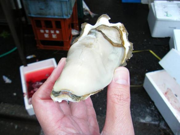 先週の日曜日、閖上朝市に行ってきました。一番のお楽しみは生牡蠣です10月になってからお店でも生牡蠣が売られていましたが、初牡蠣は閖上の剥きたて!とちょっとこだわりのあるふくふく家です買物は後回しにして、牡蠣へ直行です。「ここで食べるので2つお願いします!」と意気揚揚に注文するふく母☆おじさんが、スパッと鮮やかに剥いてくれます。お店に前はとっても混雑していたので、ちょっと裏をお借りして記念撮影です。おじさん、ありがとうございました待望の生牡蠣は、とっても綺麗でプリプリと大きかったです。磯の香りと、牡蠣独特のクリーミーな風味が最高に美味しかったです。う~ん!牡蠣好きにはたまりません☆しあわせ~♪毎週のお楽しみになりそうです