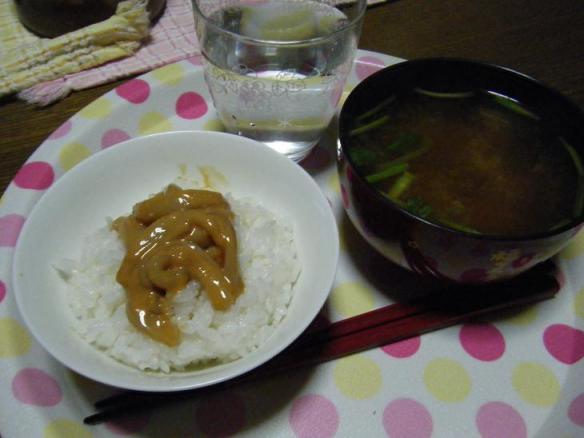 ふく母流のイカの塩辛が完成しましたなんと「お味噌」が少々入るんですヨ。ふく父が作ってくれていた塩辛は、塩のみの味付けだったのでちょっとびっくりデスふく母曰く「臭みがなくなるのよ~」さっそくほかほかの炊きたてご飯で朝ごはんです。う~ん!やっぱり美味しいご飯がパクパク、進むクンです♪所長とSさんにもちょっとだけ持っていきま~す。喜んでくれるかなぁ
