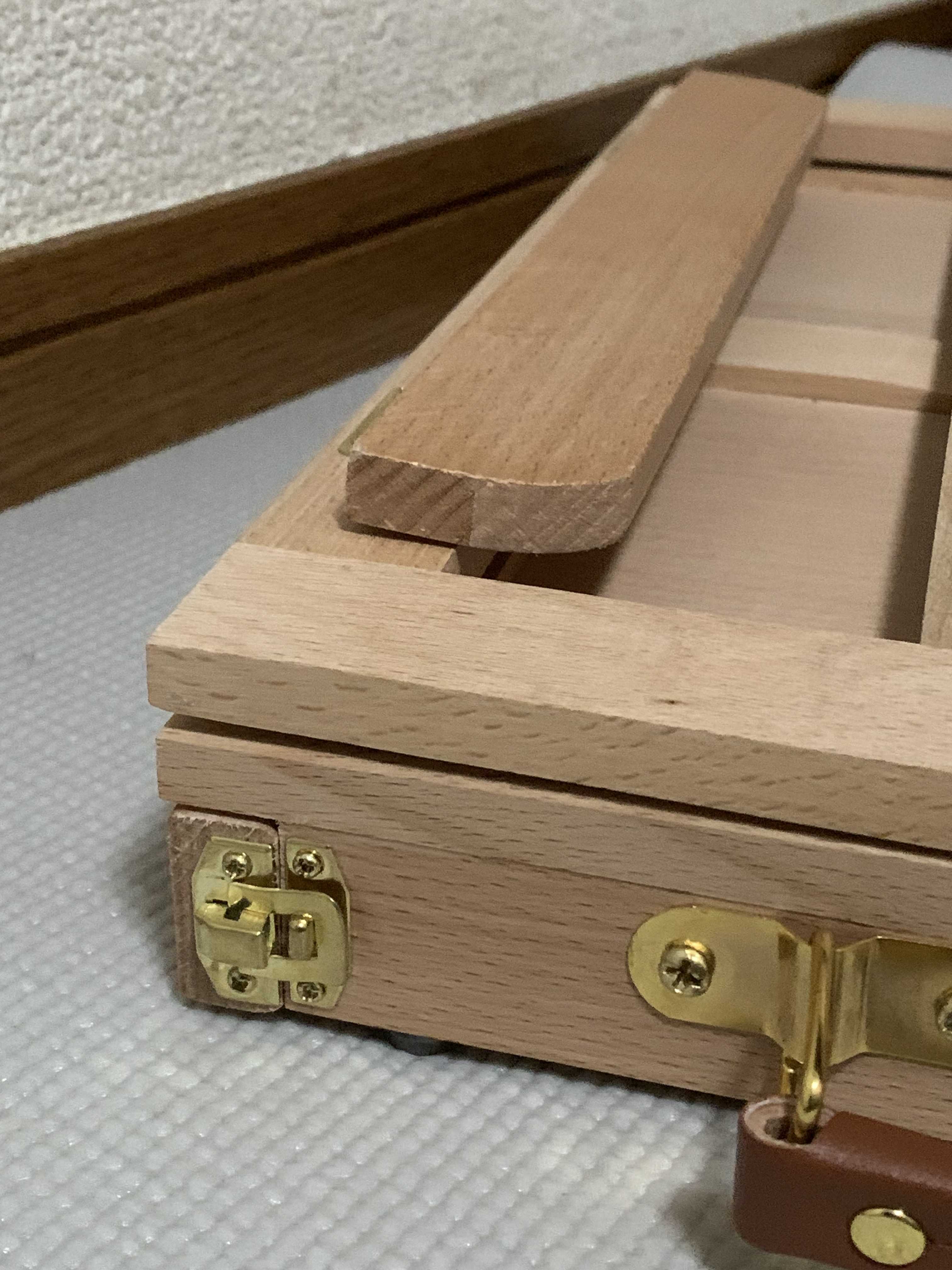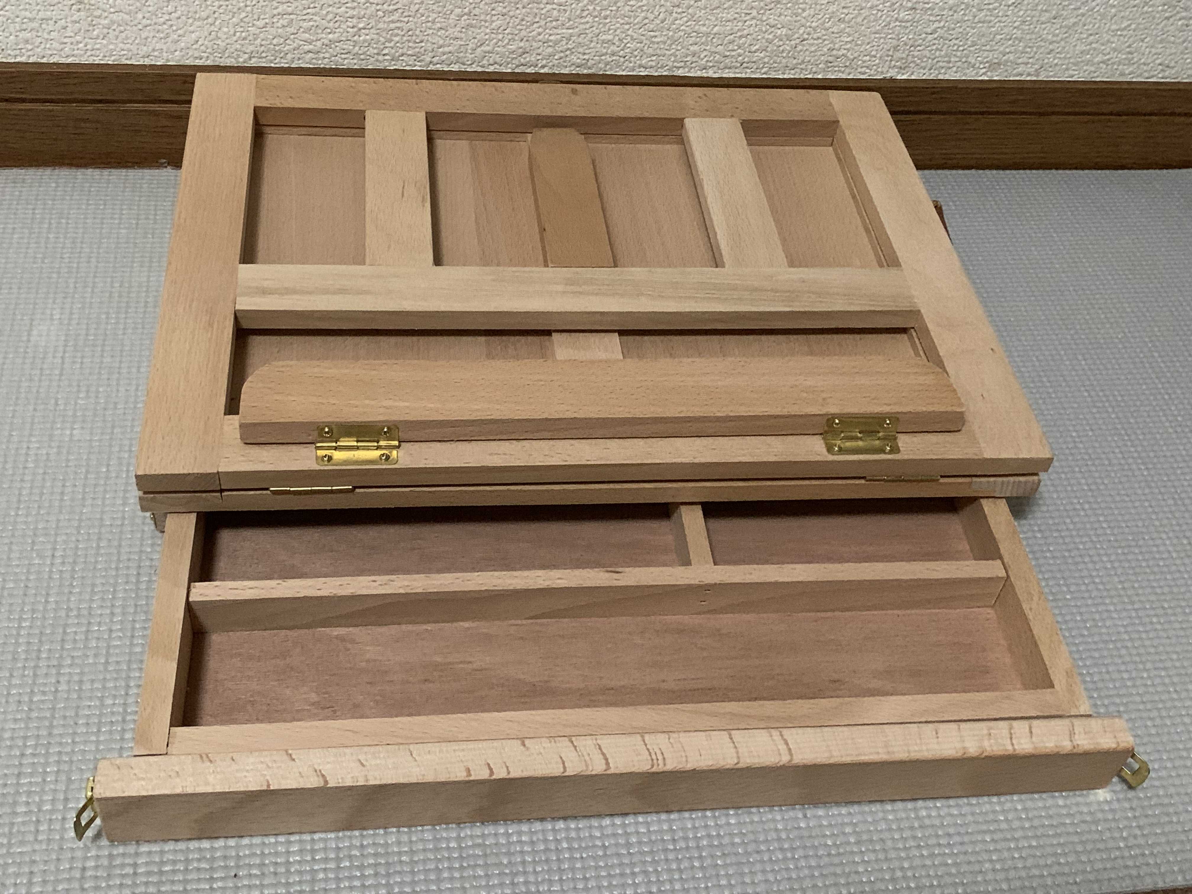 持ち運ぶ事ができるように引き出しや立て掛ける部分動かないようになってます↓