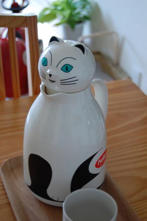 卓上魔法瓶を買いました。卓上魔法瓶といえば以前、こちらを買ったのですが(過去記事参照)、これはお茶用。今回はコーヒー用です。この手のやつは、コーヒーを入れると匂いが取れないと聞いたので。たしかに。洗ってもコーヒーの匂いの取れない猫ちゃんになりました。でも、いいんです。かわいいです。コーヒーメーカー横にスタンバイ。我が家はいつも、朝コーヒーを入れ、保温はすぐに切って、そのままです。飲むときはレンジでチンしてましたが、何だかなぁと思っていました。そこで猫ちゃんの登場。ようこそようこそ。届いてみて、一番ビックリしたのは「軽いっ!」ってこと。特に頭部分なんか、「ちゃんと脳みそ入ってる!?」ってくらい。「・・・いや、入っとりませんがな。」保温も結構長い間大丈夫で、そこまでコーヒーがぶ飲みしない我が家にはちょっと大きすぎたかしらぐらいです。これと迷ったんだよねー!!北欧といえばこちらですが、どう見てもかっこいいんだけど、むちゃくちゃいいんだけどね、やっぱりすてきだねー、そうとういいよねー、もうちょっと安くならないの??「半額以下ざますのあたしたち!」「しかも12月9日まで10パーオフざますわよ!!」白と黒とでも長い間悩みましたが、白にして良かったかな~とも思います。調理中、ちらちら目が合って、ちょっぴり怖いです。「なんざますのっっ!!!」ヒィィィィィッ!!ビビる母にポチッとおねがいしまっす!にほんブログ村でもかわいいの♪