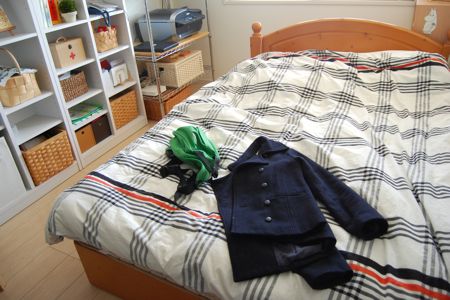 めっきり寒くなり、コートが欠かせなくなってきました。ちなみに母、例えば幼稚園のお見送りにいった後は、そそくさと家に帰り、それから家事に取りかかります。「あれしてー、これしてー。」といろいろすることはあるので、コートはいつもこのようにベッドの上に投げ出されたままです。・・・・ごめんなさい、ちょっと嘘です。本当はこのへんに脱ぎ捨てられたパジャマだとか夫のアウターだとかバッグだとかがもっと散乱しています。ま、こんな感じってことで。大抵、このままほたっておかれることが多く、夕方お迎えに行って、またベッドにほたっておかれて、夜、夫が寝るときになって、「ちょっとこれ・・・・・。」とかなり迷惑そうにしています。あ、めんごめんご~!てことで、これを買いました。カナダか・・・。北欧じゃないけど、許してね。つけるとこんな感じになります。コート、何だかすごいショボンとしてみえますが・・・。いや、いいですこれ。帰って来て掛けて、行く時さっと取って。ベッドの上、スッキリ~。なんで今までこれを用意しとかなかったんだってくらい。すぐ隣に、扉を開けたらクローゼットがあるというのに・・・、ですが、その一手間がメンドクサイんです。開けて、ハンガーに引っ掛けて。それだけのことなんですが。でも、これならサッとかけれて、でも、ドアに隠れて見えない!(大抵ここのドアは開け放たれているので、リビングからは見えないのです。)ちなみに閉めてリビング側から見るとこんな感じ。ちょっとフックがコンニチハしちゃってますが、そこは仕方ない。たかがフック、こんなにかけがえのないものになろうとは。。。これのお陰で、パジャマも脱ぎ散らかしたままにしないようにしよう!とか、バッグはちゃんとここに入れなきゃね!って、思っていますので、夫も・・・・、ヨロピコね。ただ、もうちょっと長かったら、もっと良かった。うちのドア、とっても背が高くて、フード付きでないコートだと、153センチの母、軽くジャンプして掛けています。・・・・運動運動!!いろいろ探してみましたが、これが一番長く、かっこいいものだったので後悔はしていませんが。 三連タイプやもっとシンプルなものなどいろいろあるようです。砂場で出来た偶然の産物にポチッとおねがいしまっす!にほんブログ村目玉に見える?オッパイに見える?ままごと用の蓋を押し付けると、こうなったんだって。by 兄さん母は、足下にこれがあって、たまげたよ。