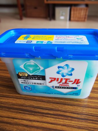 どうもこんばんわ。新商品に弱い、はは0333です。今日、アリエールのジェルボールを買ってきました。CMを見て、ずっと気になっていたもの。先日、3個入り98円でお試し用が売ってあったので試しにと思って買ったのですが、これがまぁ、すこぶる良い。ほんとにポンッと入れるだけでいいし、何より、洗濯物の香りがとてもいいのです。我が家は、衣類などは洗剤と柔軟剤で洗い、タオルは洗剤だけで洗い・・・と、毎日最低2回は回していました。衣類の場合洗剤だけだと香りが足りないし、でもタオルの場合柔軟剤入れたら吸水が悪くなるしー、という理由なのですが、のんびりな朝はともかく、忙しい朝はその2回洗濯機を回すのがほんと億劫。でもこれだったら、ちゃんと香りもつくし、吸水はちゃんとしてくれるしーといいことだらけ。柔軟剤のあのフワフワ感がなくなった・・・?うーーん、分かんない!!! ←テキトーーそんな感じなので、ちょっと普通の洗剤に比べたら割高な気がしますが、あ、でも柔軟剤を使わないからその分のことを考えたら、どっこいどっこい??というわけで、このプニプニしたジェルボールを頼りにすることにしたのです。で、この洗剤を使うにあたり、失礼ながらこれの入れ物はいかがなものかしらと・・・。「やっぱり、アリエールでしょ。」だれも見ないスペースなのですが、一応、何となく。というわけで、ポスンと。家にあったカゴがピッタリサイズ。ほら、見えてない!!・・・って見えてるけど、許容範囲許容範囲。使うときは、このままパカッと。容器をもっとお洒落なものに、そう例えばシースルーのお洒落な感じのものにしようかとも思ったのですが、でも時々商品説明を見たくなるときもあるので、しばらくはこのままでいってみようと思います。うん、私の目線からは、あの青い蓋も見えてない!!これから二・三日は、お洗濯が楽しみになりそうです。←二・三日だけかい! シースルーでお洒落な感じのもの。これだと入るかなー?? 娘の音読の宿題にいちいち萌え萌えしてしまう夫にポチッとおねがいしまっす!にほんブログ村まぁ、気持ちは分かる。