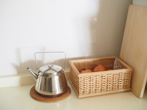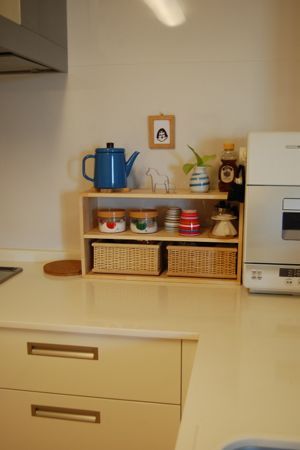 この場所には、玉ねぎとか入れてるカゴとヤカンだけ残りました。