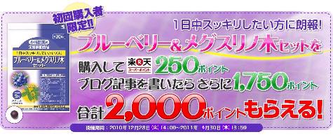 今日は仕事から帰ってきたらメール便で昨日頼んだ 小林製薬さまのブルーベリー&メグスリノ木セットが 届いていました。 【限定】5商品がなんと実質無料で試せる!! 楽天ブログさんを書いている方で、新規に小林製薬 の商品を購入の方限定の超お得な情報です。 無料で試せるのキャンペーン中です。2011年6 月30日(木)13:59〆にほんブログ村