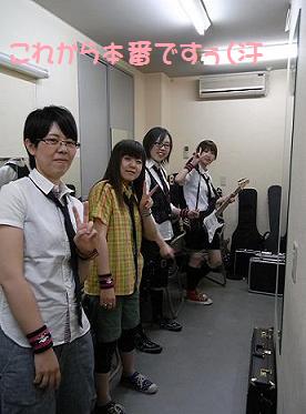 さてさて・・・大難関のエアバックライブ、無事に終了しましたリハをあまり緊張せずに出来て、このまま本番もとは行かず、出番前にメンバー一同極度の緊張に襲われますそんな時、今回対バンさせていただいたSAVAIのメンバーであり、サークル仲間でもあるAnnyさん、さとーさん、拓未さん、そしてカメラマンの太子さんが楽屋に来てくれましたいや~、ありがたいですぅフリフリはいいお兄さんを持ちました写真も撮ってくれて、少し気持ちが楽になりましたライブ画像は後日アップしますそしてトップのメンバー写真。6月のライブにセイラちゃんが出れなかったため3人分しか載せていませんが、次は4人分しっかりアップさせていただきま~すお楽しみに~おまけ~会場にはこんなにもたくさんのお客様がいらっしゃってました前列の方しか写ってませんが、後ろの方もびっしりでしたフリフリ目当てに来ていただいた方、違うバンド目当てに来ていただいた方、皆様に感謝です本当にありがとうございましたなお