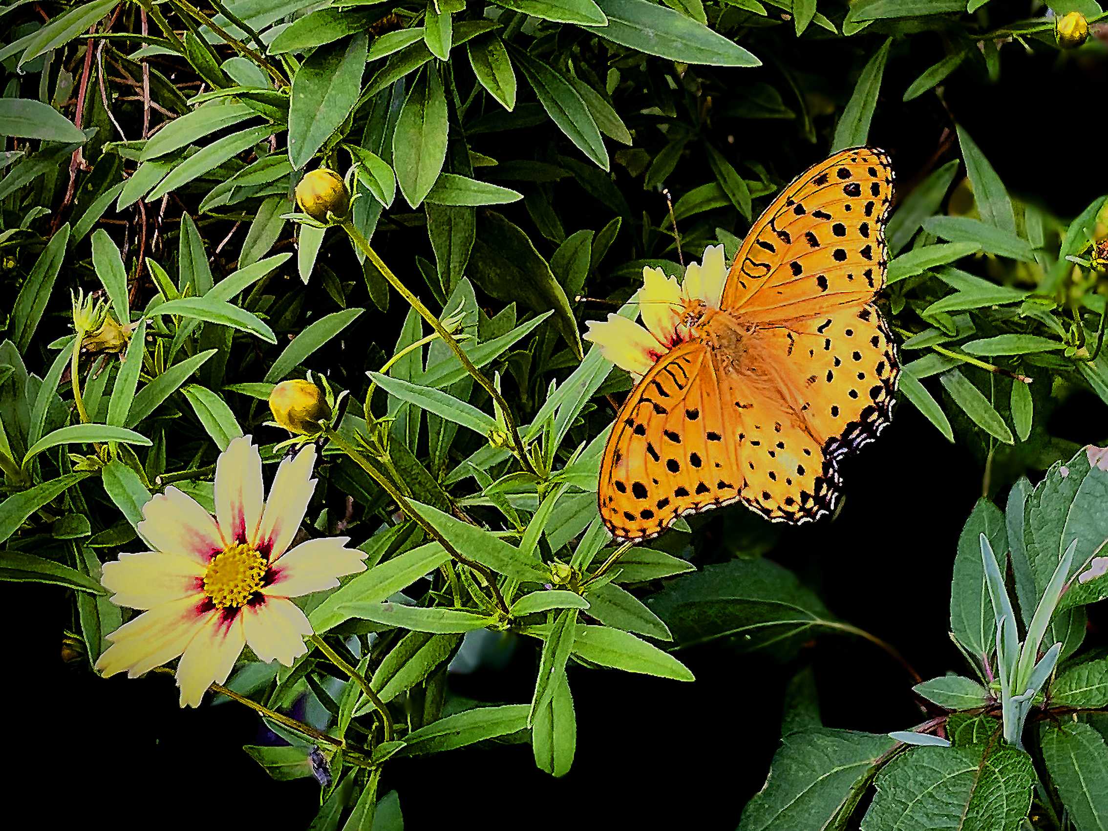 秋の蝶ツマグロヒョウモン(オス)とナミアゲハ