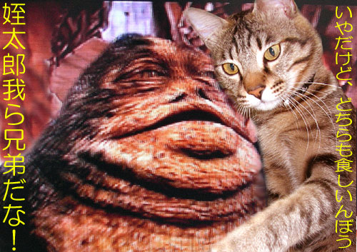 たまには画像一枚で・・・悟空との対決で有名になったジャバいろんなものを食ってしまうという点では共通の2人。なかよくなれそうだね、姪太郎!↑日々クリックで日々投票お願いします↑ランキングページはこちら。