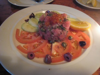 先週の土曜日には、NYに初雪が降りました!10月に雪って、すごいなあ~。天気予報では週末は雪!なんて言われてたけどまさかね~って、信じてませんでした。しかし、これがけっこう吹雪いてきて、お客さんもダウンコートにスノーブーツの重装備で来店するほどでした。写真はだいぶ前になりますが、職場の近くの、イタリアンレストランに行った時ののもの。カジュアルなイタリアンを食べさせてくれるお店で、値段も手頃なので気に入っています♪マグロのタルタル生ハムとメロンの前菜ロブスターのクリーミーパスタイタリアンソーセージのショートパスタ