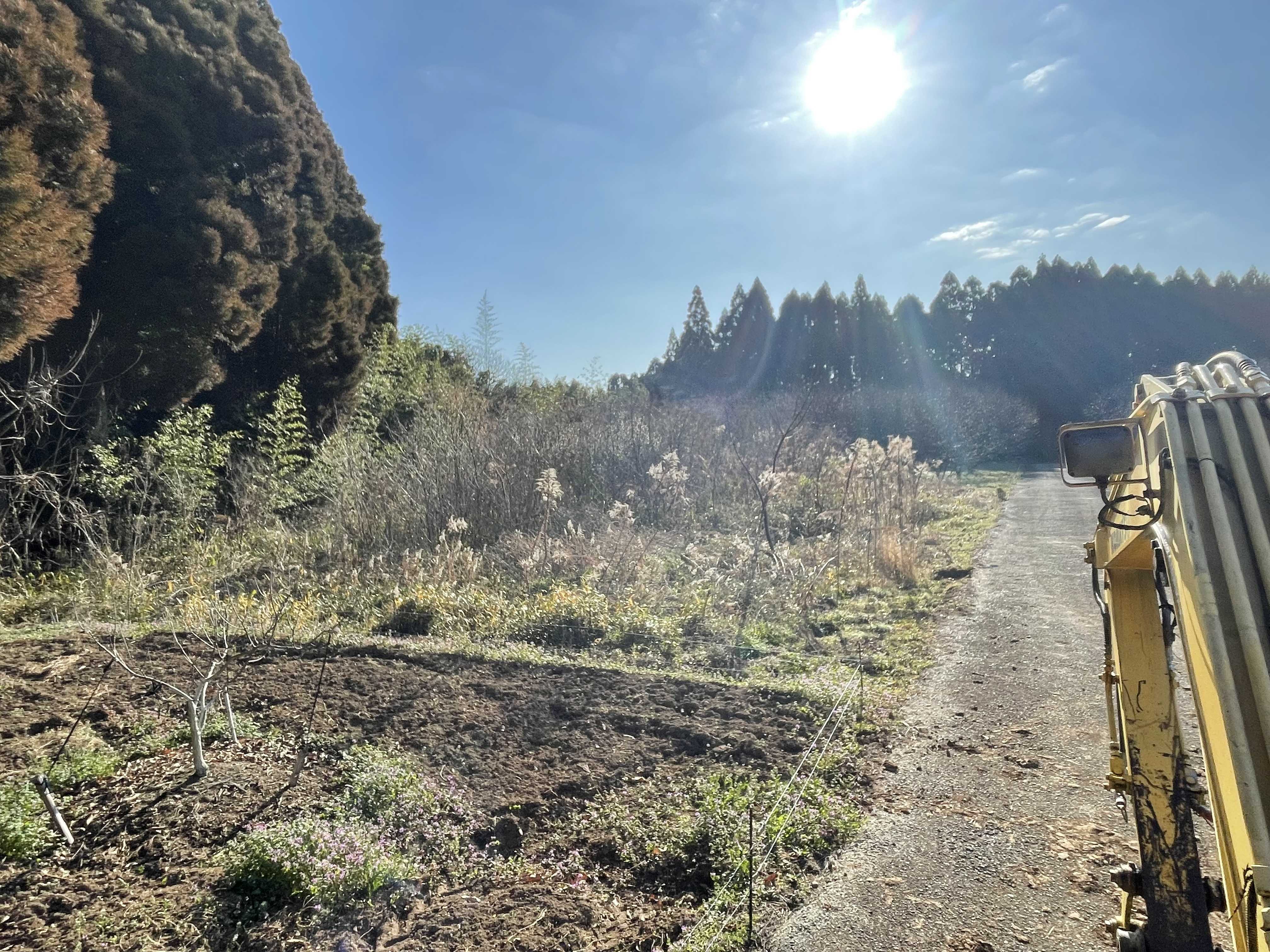 すももの増産の候補地として目をつけてはいたものの、まともに取り組んでは時間と労力の消費が激しい大荒れ地に、弟の助力もあって強力なツールを導入し、ついにメスを入れる時がきました。今回もまた、重機が大活躍となる作業ですね。この荒地は普通の草だけではなく、もはや木と化した元草や3〜7cmクラスの小木が所狭しと立ち並んでおり、ちょっとやそっとでは手がつけられる状態ではありませんでした。そこで、レバレッジを効かせるために重機のバックホーの出番となりました。このユンボや、バックホーと呼ばれるいわゆるショベルカーですが、今回もその圧倒的な膂力を見せてくれます。この重機は基本的には腕の先端がバケットと呼ばれるカップになっていて、それで土を堀り掬う仕事をするのがメインとなります。ですが、じつはアームの先端はコンバート式となっており、油圧を利用してあらゆるツールを使用する事ができます。今回使用したのは草刈り用アタッチメントです。これは、極太の刃が高速回転し、5cm前後の立木ならバリバリバリッ!!と、あっという間に細断してしまうという強力なツールです。AM10:30レッツスタート!バリバリバリバリバリバリバリバリ!!お昼休憩1時間挟んで、バリバリバリバリバリバリ!!PM2:30終了!トータル作業時間、休憩除いて約3時間弱....なんとも圧倒的なパワーにて、思っていたよりも早くケリがついちゃいましたね( ´∀`)!まぁ、今度はこの散らばった木端を片付けねばならんのですがね(・・;)余った時間で栗の木の手入れをやって、この日は明るいうちに終業。これから毎日暖かくなり、春が本格化していきます。未来のために、今できる投資を!里山は財産ですね〜( ´∀`)人生は、自然への敬意と共に!