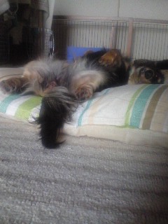 (新しく買った長座布団。いつもは文が占拠してるのに、珍しく菊が寝れてます)