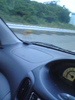 昨日、車を運転していたときのことです。大通り片側二車線ある道路を走ってました。私は左車線で信号が赤になり止まっていたんです。かなり混んでいてナビは渋滞を示していたのに、私の隣の右車線は車がいませんでした。渋滞なのに右だけ空いてるなんてことはないし・・・右のサイドミラーを見たら、右後方で異常に遅くトロトロと走っています。どしたのかな?とよーく見たら、道路の真ん中に犬が走ってるんです。え?!犬はタッタッタッタッと普通の早足くらいで道路を悠々と歩いていたんです。日本犬と洋犬が混じったような中型犬ほどの大きさの茶色いわんちゃんで、首輪をしていました。ご近所のわんちゃんで勝手にお散歩しているのか、それとも迷子なのか・・・けど、車を運転しているのでどうとも出来ず。途中で歩道に行きましたが、あのわんちゃんが無事おうちに帰れたかどうかものすごく心配です。うちの子は大丈夫なの~という方いらっしゃいますが、やっぱり万が一ということがあるのでリードはきちんとつけてくださいね。なにかあってから後悔しても遅いですから。歩道に渡ったわんちゃんを撮りました。運転しながらなのでブレてますが。
