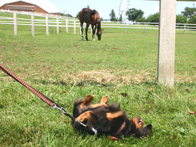 前の日記の続きです。プチ旅行で千葉の館山に行ってきました。とにかく暑くて暑くてへばってしまいましたけど。まずは、犬同伴可の牧場に行ってみよう。牛の牧場、馬の牧場、羊の牧場、花畑などがあるみたい。牛さんの後ろ姿を見たときは吠えなかったのに、牛を真正面から見たとき、文が吠えてしまいました。馬さんの前でごろごろする文馬さんより飼い主命の菊そこらへんに落ちている羊さんの餌を探す2匹 とにかく緑が沢山あって走り回って楽しそう宿について、お部屋のテーブルの上にはカードが置いてありました。これまた犬の名前が書いてあります~。嬉しいです。部屋に備え付けてあったハウスに入る文疲れたのかすぐに眠る菊夜、宿の方が花火をしてくださいました。犬はあまり興味がないみたいです・・・帰りに海に寄ってみましたが、暑くて人間がダウンです。気温35℃の日の真昼間に外で遊ぼうというのは間違っている!とはっきりわかった旅行でした(笑)夏、犬と旅行する際に絶対に必要なものは、保冷剤、水、とにかく犬を冷やすものですね。犬の体温を下げるためのお洋服や、バンダナ、アルミ板など色々売ってますね。快適な旅には必要ですね。