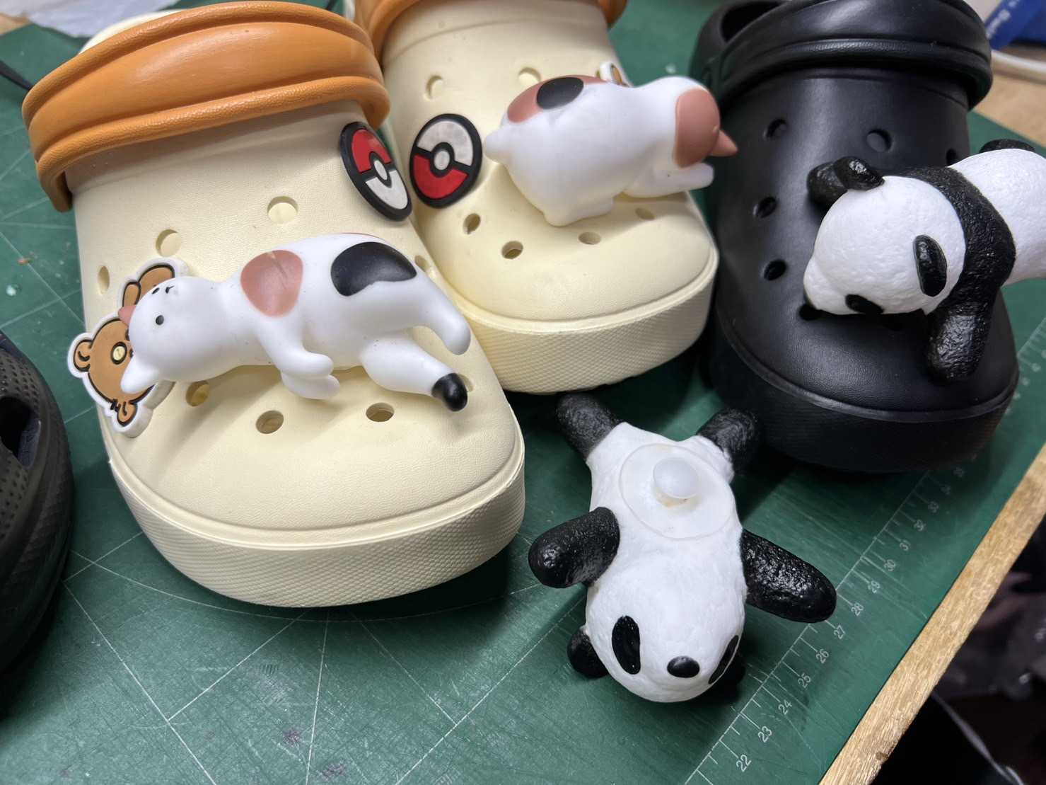 👟✨ 今日のクロックス改造日記!表情豊かな三毛猫とパンダの立体チャームをゲット!せっ…