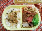 やうです。再びちゃうちゃんがお休みしてる隙に保護者さんのおべんとうを見てるの。今日のお弁当はごはんがメイン。炒り卵ときゅうりの混ぜごはんみたい。味付けは保護者さんがお気に入りの農協で売ってる味付け酢。ちょっぴり甘めで,混ぜごはんだけじゃなくサラダや酢物にも合うんだって。おかずは手抜きしてチキンナゲットとピーマンの胡麻和えおひたし。あと晩ごはん用に作った筑前煮みたい。混ぜごはん。簡単ですね~