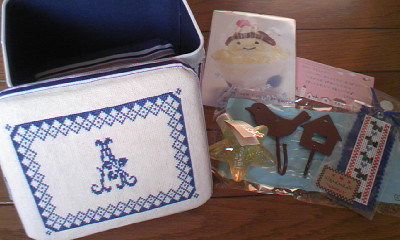 きれいに布が貼られた缶の蓋には、クロスステッチのイニシャルが(*'o'*)。うさこちゃんの日記で紹介されていたのは、ここで使われていたのでした♪
