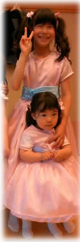 すっかり札幌も暑くなりました~。今日は一日久し振りに1人で休みです。あいあいを保育園で預かってもらって、あいあいがいるとできないことをいろいろとやってました。最近の手作りは~。娘二人の結婚式用のドレスでした。何だかんだいって、2ヶ月くらいかかっちゃいましたね・・・。4月からまた8時~5時シフトに戻ったのに、あいあいはまだまだ夜中に起きては「ぱいぱい~」とごそごそやっているので、睡眠時間を削りながらの作業でした(笑)。二人の娘たちの近況としては・・1.すいかすし詰め中・・。1月からすいかのクラスで転出が相次いでいて、学年末までに4人転出!さらに、他のクラスでも何人か転出してしまって、4月1日現在ですいかの学年は80人に。3年生以上は一学年80人以下だと2クラス。81人以上は3クラスになるらしく。ぎりぎりで2クラスになってしまいました・・・。これまでのクラスが、おとなしい感じの子が多い上に、ベテランの女の先生でしっかりまとまっていたのに対して、今度のクラスは、「高学年が続いていて、久し振りに中学年を持ちます!」という若い男の先生と、パワフルで落ち着きのない子が多い子どもたち・・という組み合わせ。すいかは最初の方はカルチャーショックを受けてましたが、いろんな子とお友達になって、毎日楽しそうにしています。行動範囲もちょっと広がったかな~?一応、家から学校までの範囲のお友達の家への行き来に関しては1人でもOK、ということにしました。2.あいあい2度の進級~!あいあいはもう1歳10ヶ月に入ろうとしています。1歳半検診では、「体重が増えすぎなので、2歳になったらもう一度見せてくださいね~。」と言われてしまいました。でも、その後体重の増えは収まって、ただいま身長85センチ、体重13キロ、と、グラフのわくの中に少しずつ近づいていっていて一安心です。あいあいの保育園は0~1歳児の入所児童が多くて、今年はついに、1歳児クラスが二つに分かれてしまいました・・・。1歳7ヶ月まで0歳児クラスにいて、4月から1歳児(前半)クラスで一番のお姉ちゃん、という感じだったんですが、今日から1歳児(後半)クラス一番のおちびさんに進級しちゃいました。怖いもの知らずで、滑り台のはしごもひょいひょいのぼって、1人ですべるし、鉄棒もぶらぶらぶら下がっているし、あまりの成長ぶりに、親も先生たちもびっくりすることが多い半年でした。まだまだあいあいがキーボードをたたいたりするので、ゆっくり更新はできないけど、少しならビデオを見たりしていてくれるようになってきたので、たまには更新できたらいいなぁ~。と思っています。