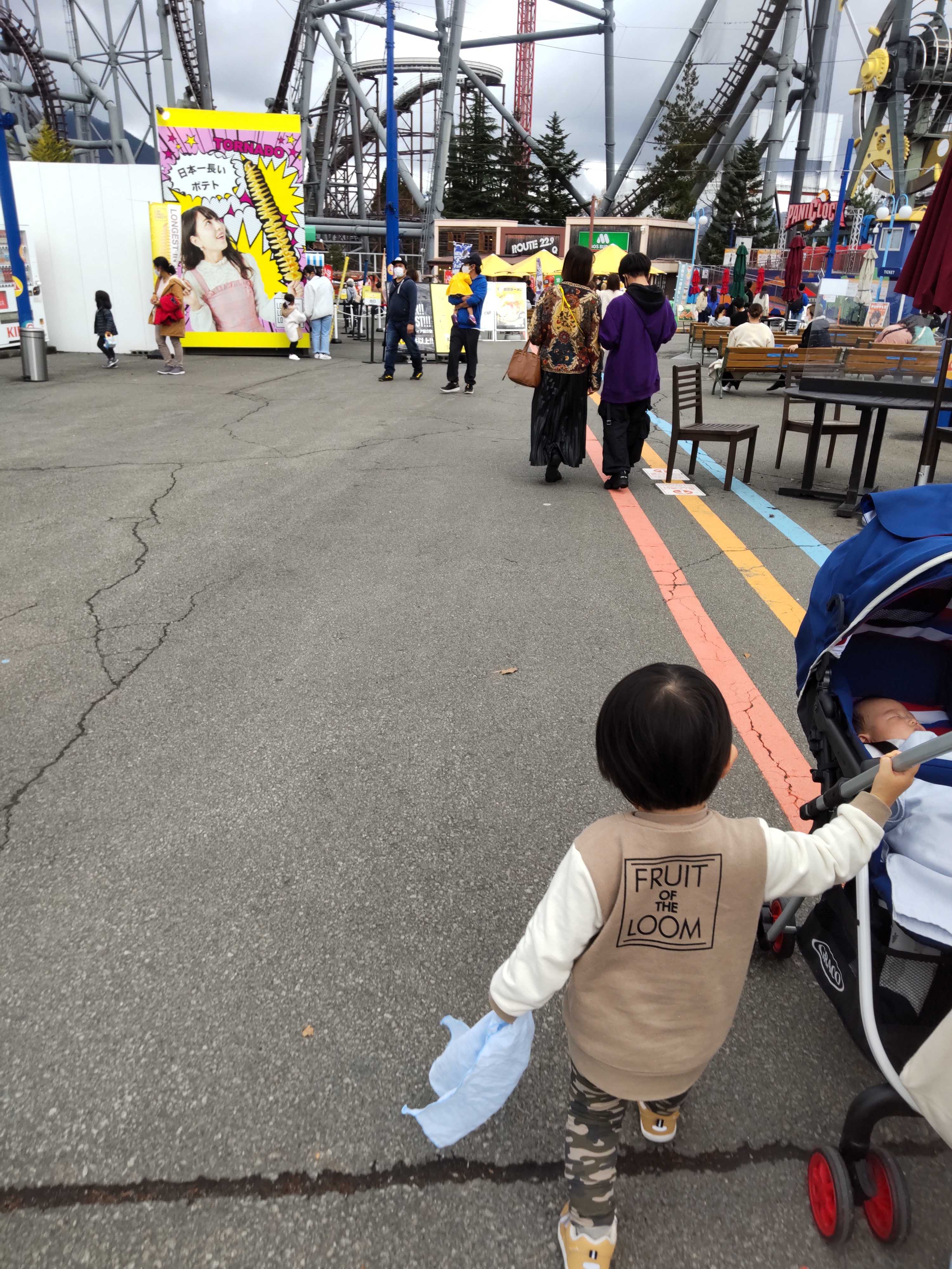富士急ハイランドでは↑の特定日を除いて90分間であれば駐車料金が無料です。私たちが今回駐車したのはレッドパーキング(旧第2駐車場)です。第2駐車場は富士急ハイランド駅の最寄りで第1駐車場から入園するよりトーマスランドが近くにあります。第2駐車場では先に駐車券を取って後で精算するシステムです。ハイランドの出口付近に事前精算機があるので1分1秒を争う方は駐車券を持っていくのが良いと思われます。ちなみに第1駐車場の場合は前払いシステムなので領収書を取っておいて90分以内であれば後ほど返金される形になりますのでご注意ください。それでは入場していきましょう。富士急ハイランドは入園料は無料ですがチケットブースでチケットをいただく必要があります。あとは簡易的な手荷物検査もあります。平日ということもありそれほど時間は掛かりませんでした。 顔認証を経て園内へGO!いきなり遊園地らしい景色が広がります。取り敢えず入ってすぐにトイレへ。特に急いだりせず移動も散歩がてらのんびり行きます。入場してもすぐにトーマスランドがあるというわけではなく地面の青いラインを進んでいきます。美しい紅葉を抜けるとトーマスランドまであと少し!ものすごい陽射しのトーマスランドに到着しました。冬場は寒いので防寒対策は忘れずに!洗える ガールズ 中綿ジャケット 子供服 キッズ ベビー 女の子 アウター・ジャケット 22AW中重アウター門をくぐるとこの景色の場所に出ます。場所で言うとゴードンがいる付近でアトラクションのトーマスのたからさがし大冒険があります。ここから逆側にあるトーマスとパーシーのわくわくライドに向かいます。ちなみに第1駐車場側からトーマスランドに入るとトーマスとパーシーのわくわくライドがすぐに見える形になります。園内はクリスマスムードになっていてぶらぶら歩くだけでもワクワクします。トップハム・ハット卿は赤くて白いぽんぽんが付いた可愛いマフラーをしています。\クーポン利用で⇒980円/マフラー キッズ チェック カシミヤ タッチ キッズ 全6種類 カシミヤ タッチ 男の子 女の子 赤チェック おしゃれ 大人 マフラー 親子ペア ウール キッズ 親子 洗える 小学生 中学生 ストール 通学 兼用 ペアルック 薄手 厚手ナップフォードステーションに到着しました。こちらのアトラクションは1歳以上500円なので家族で1500円掛かりました。トーマスが優しい笑顔でやってきました。ガチャガチャで当たったトーマスの腕時計をした息子も大喜びです。トーマスが1周して来るくらい(10分くらい)の待ち時間で乗車出来ました。沿線にはトーマスに出てくるキャラクターがたくさん。トーマスも何やらお喋りしてくれています。大人の私も息子のお陰でトーマスのキャラクターの名前を覚えたので楽しいです。ディーゼル10の顔怖すぎ。お、あれはバーティ。乗客がちょっと怖い……。息子のぷにぷにほっぺ可愛すぎ。非日常的な空間が味わえる素敵なアトラクションですね。ちなみに最後の方でレストランのお客さんと手を振り合えるのでお昼時に乗車する方は積極的に手を振ってみましょう。楽しい時間はあっという間で終点の駅に着きました。駅を降りるとそこはお土産屋さんになっておりトーマスグッズがものすごい充実しています。ガチャガチャもご覧の通りカプセルプラレールだらけです。ガチャガチャ沼に要注意!お土産屋さんでぶらぶらウインドーショッピングをした後にトイレに行った妻を息子と共にベンチに座って待っていると既に駐車してから1時間が経過していました。全く時の経つのは早いものです。残り時間はあと30分。本当はりんご飴とか食べたかったけれど息子の歩く速度などを考えると来た道を引き返し帰宅することにしました。りんご飴はまた次回ですね。結果的に1つのアトラクションしか乗れませんでしたが1500円で十分にトーマスランドの雰囲気を楽しむことが出来ました。2、3個アトラクションに乗りたい方や園内でついでに飲食したい方などは移動や待ち時間トイレ時間なども考えると90分では厳しいかもしれません。浮いた駐車場の分で息子にトーマスのシールブックを購入してあげました。(帰りの本屋さんで)きかんしゃトーマス1001シールブック きかんしゃトーマスとなかまたち [ ヒット・エンタティンメント ]次、来た時にはまた90分以内で今度は富士急グルメに比重を置いてみたいなと思いました。