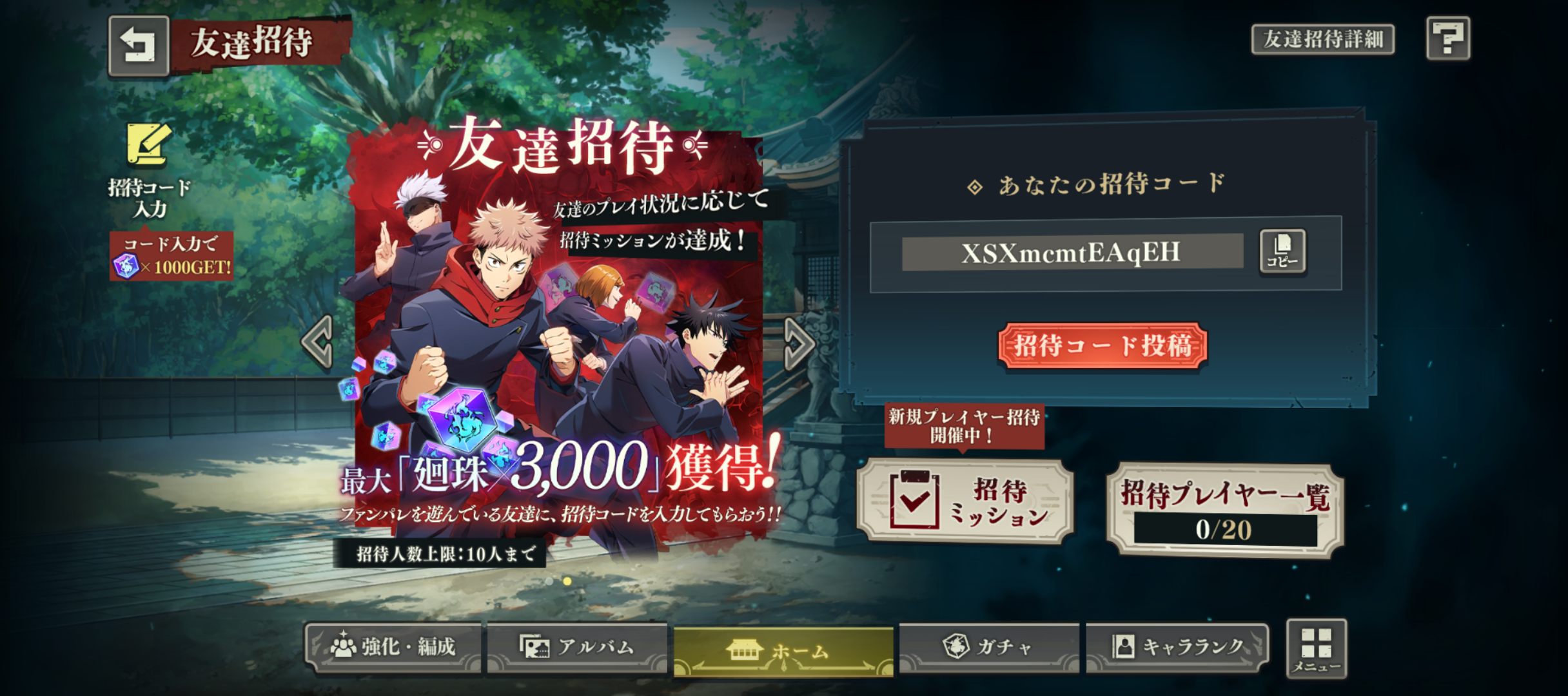 招待コード