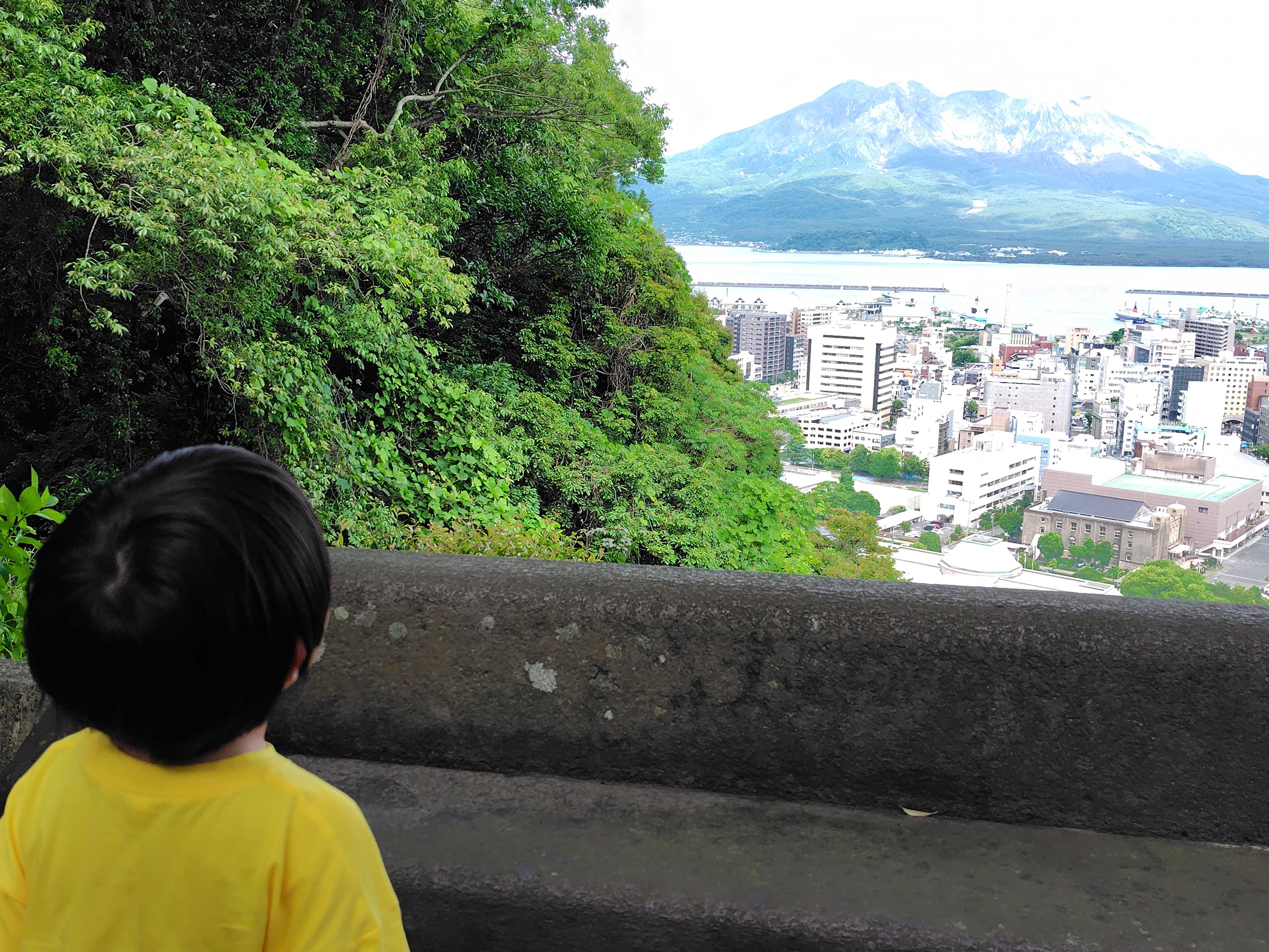 桜島が背後に聳えます。