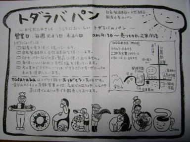 もう20年来の友人のみきちゃん夫婦が、新潟県上越市でぱん屋さんを開店しました「トダラバパン」~からだにやさしく こころにおいしい トダラバのパン~先日、たくさんのパンと生地を送ってくれました国産小麦を使った天然酵母のパンは、素朴で、ふっくらして、丁寧に形成されたパンたち、一つ一つを心をこめて作っている様子が伝わってきましたみきちゃんと知り合ったのは、もう18年前彼女が信州大学の学生で、わたしがホテル勤務の頃、お互い出店していたフリマで話してから連絡先を聞くこともなく別れたのに、その後わたしの勤務先にFAXをくれて、それから今まで、連絡を取り合っているのですわたしはずっと松本に住んでいますが、みきちゃんからのお手紙は、長野、白馬、菅平、ニュージーランド、金沢、鳥越、そして上越といろんなところから旅をして届きますお互い仕事を変わったり、夢の形も少しずつ変わっているけれど、なぜかいつも同じようなことを思って、感じている友達です家族が一人ずつ増えて、お互いのおうちに泊まったりして、今では家族ぐるみ、友達ぐるみのおつきあいいつのまにか、こんなにも、お互いのことを知っている人が増えたんだね!彼女は、太陽のような、大輪の花のような、ぱっと輝く笑顔の持ち主ぜひその笑顔に会いに、トダラバパンに行ってみて下さい--------------------------------笑顔の連鎖を広げよう!!一日一回、再生をお願いします今日はシスは新宿スポレクで歌ってますタイパンツ撮影会でモデルをしていただいた、よっぴさんも「浮雲」で出演します--------------------------------10月16日、17日(土日)松本市のパワースポット、あがたの森 「クラフトピクニック」に出店しますワークショップ主体の楽しいイベントです →クラフトピクニックHP ※NOONEではスタッフ募集中~ おとといの日記、ワークショップの日記 読んでね!!---------------------------------ゆるべジのあな吉さんこと、浅倉ユキさんの出張料理教室@松本若干名、お席ご用意できます毎日の生活に、そしてあなたの人生まで素敵に変わっちゃう、そんな講座ばかりです10月22日(金)「手帳術」 2名お申込可能10月23日(土)「フープロ講座」 満席 キャンセル待ち受付中10月23日(土)「ラッピング講座」お席ご用意できますなかなか口頭ではうまく伝えられないラッピング講座については宮嵜さんのブログ、あな吉さんのブログをご覧くださいね※10月22日(金)「手帳術」では、文具屋さんが手帳グッズを販売してくださる予定です店頭では種類の少ないA5の手帳ファイルや、NOONEの手帳ファイルも便乗販売しちゃいま~す☆お申し込みはyurubeji-matsumoto@live.jpまでお問い合わせもお気軽にどうぞ~