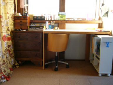 早いものでもう5回目!!「お楽しみデイ」の開催が決まりました~ただいま出店者を募集中です 現在出店が決定しているのが、カフェ、タイパンツ、石鹸、フラワーレメディなので、 それ以外のジャンルの出店をお待ちしております 日時:2011年2月27日(日) 10~16時 会場:another~kitchen(荻窪) 出店料:テーブル1台スペース 1200円 飲食物販のみ(キッチン使用なし)700円 注意事項: ※2月3日より告知を開始します この日以降の出店キャンセルはキャンセル料が発生します ※出店ジャンルは特に規制はありませんが、共同スペースで仕切りなしの出店です お互いのスペースに迷惑にならない出店内容でお願いします ※会場に託児スペースやキッズスペースは用意しないため、 出店者の子ども連れは原則禁止です(受付は可) 興味ある方はメッセージまたはコメントください 「お楽しみデイ出店者」コミュもあるので、よかったらリクエストください 第1回「お楽しみデイ 開催しました」第2回「すべての女子の文化祭!!「お楽しみデイ」開催しました 」第3回「第3回 お楽しみデイ 開催しました」第4回「お楽しみデイ♪♪♪終了しました」お楽しみデイはわたしとミカさんと二人で開催していましたが、彼女が新しいお仕事をはじめてお忙しくなるということで、今回はわたし一人での主催になります他の出店のみなさまに助けていただきながら、がんばります!------------------------------------------------前回の日記で家中模様替え中!について書きましたが、大まかな部屋分けができてそれぞれの部屋が機能し始めましたまずはすっかりきれいになった、子どもスペースからわたしには息子が2人おりますが、勉強机はこれ一つです上の息子が小学校に上がる時にあちこち見に行って、120cm幅のこのデスクに決めました夫婦の経験上、冬が冷え込む長野県ではこたつで勉強する確率が高いんじゃないか?机って、受験の時しか必要ないよね?という意見にまとまって、息子たちが独立した後にわたしが洋裁デスクとして使う予定です実際シンプルな机はとても使いやすいようですし、小5と小2の息子は帰宅時間が違うので、効率良く使ってますね長期休みの時はどちらかがちゃぶ台かコタツ、どちらかが机と、けんかすることなく勉強しますよ今まではミシンと机を並べていましたが、ミシンを外して息子たちのたんすを収納散らかりがちだったプリントやお手紙は全部たんすの上の箱に収めて、時間ができたときにまとめて片付けることにしました机の上にプリントや持ち帰ったテストが散乱しているのがストレスでしたが、どうやら解消しそうです同じ部屋に連れ合いのギタースペースも作りました子どもの机周辺に書類や衣類など置くことが多く、これもプチストレスでしたが、自分の空間ができたらとりあえずそこに置くようになりましたまだごちゃごちゃしているので、写真はありません(笑)そしてNO ONEオフィスです!!とりあえずアイテムを全部一部屋にまとめた、というところですねダンボールは1月の個展と美術館講座の道具なので、終わればすっきりするかな~外したままで使っていたミシンの天板も必要になったので再び取り付けることにしましたまだごちゃっとしていて、タイパンツを縫うところまではいってませんが、一部屋に必要なものが全てまとまっているので、とっても作業がしやすくなり、道具があちこちの部屋に散乱しなくなり、とても快適です!!それぞれの部屋をしっかりと分けることで、物が散乱しなくなりました「とりあえず自分スペースに置いておく」という習慣が付いて、他の人のスペースが散らかっていても、気にならなくなりました明日はディスクユニオンから大型ラックが届くので、他の部屋が完成したら、また書きますね~
