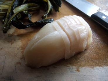 すぐき菜は蕪より繊維質がコワク、考えられたあげくに塩で漬けて室で発酵させるお漬けもんとしてたべるようになった、といわれています。そのとおり、生のすぐき菜は八百屋さんにも並びません、でも実際は焚いてもおいしいようで