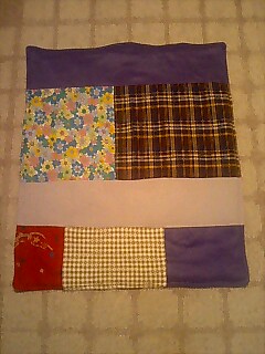 にしては、小さい・・・キッチンマットとして使うべきかもでも、裏もあったかい生地だし表は、ニットやら、ワッフル、紫のフリース使ってあっ、忘れてた~ショック!!毛糸で編み編みしたものも、合わせるつもりだったのに・・・布合わせとかって考えず適当にものさしも使わず、おおざっぱな事したもんな~編み編みも忘れるはずだわだから、サイズも小さいのかぁまぁ、これは温かいはず?だからひざ下かけ?として使うとするか