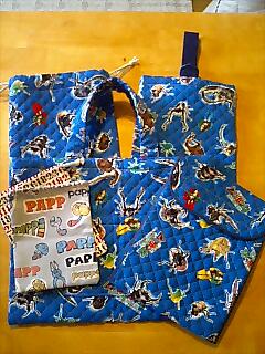 てさげ、上靴入れ、連絡帳入れ、パンの残し入れ作りました知り合いのおばさんに頼まれて(お孫さんのためらしい)人気のムシキングだよ 早くに完成して、もう渡したんだけどパソコンの調子悪くて(やっぱり)触ってなかったのだそれだけじゃなく今の時期とくに眠いでも、それだけじゃなくう~ん、いろいろと・・・ここ3日はめずらしく昼寝はせず(今、眠い)理由は、妹、甥っ子、姪っ子が2泊して寝てられなかったのよ夜は妹とお酒飲んで、テレビ見て、お互い自分の娘のスカート作って(お揃いにした)遅くまで起きててうん、完璧寝不足やわでも姉妹はいいねってこんな時感じるわうん、楽しい明日から4月パソが元気だったらがんばって更新するぞ~!その時、お揃いスカートのお披露目するよ今日は初めて絵文字使ってみました♪
