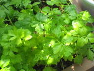 風々堂近郊、本日晴れ。雲あり。時折陰るも、穏やかな気温。 今朝、お月さまアタックがきてしまい、途端にへなるくも。激しい攻撃にだらりと予定変更し、ひきこもりしてましたがあ、ようやく波状攻撃が一段落したので、そろりと園芸店へでかけようと思っているところでございまする。そうこう思いながらさっきベランダチェックをしてて、あまりの勢いにヤツを注目── 収穫しても収穫しても復活してくる、めんこいヤツ。ワイルドセロリーさんでございまする。画像では判りにくいですが通常の大白菜さん2個分くらいには広がっております。 そーいえば、きゃつ、去年一月ににがうりの願寿さん、純白さんと一緒に太田さんからネットで取り寄せたタネから育てたのでございました。以後、健やかに育ち、大株化し、度々トッピング素材として活躍しております。で。時折、この勢いになる度、バッサバッサと切りまくり、繰り返しオカンに喰らわせてきたのだけれど。その度にわきわきと復活。手間いらず、収穫大。絵に描いたような風々堂向き野菜! …但し。くも自身は喰えないんだけど、めったにない苦手野菜だから(爆)お月さまアタックで背中がなまこ化中のくも。今宵の夕食図工は、コイツとレタスさんでツナサラダを作ることに決定。 さ。イブ呑んで、出掛けてきまっす。