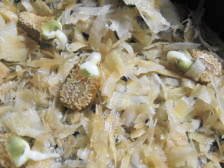 雨また雨の風々堂です。風は少し落ち着き、雨も今は一休みですが。結局、ず~~っと楽しく図工してました。でもまたりと遊びながらですので、あまり進展もなく(^_^; そうそう。手に持っている太刀にコメがございましたので、その拡大図を、どーぞ。 ま、最後までこのまんまではございません。後々ちらちら色が加わる予定、お目々にもビーズ入れる予定。入れると云えば、持っておるご本人もさきほど目が入りました。青い眼のお相撲さん(笑)そして、うっすらとその後に露払いさんが作りかけ、生首無しでぼんやりと映ってます。生首なし作りかけもそれなりにホラーでええもんですv でも、もう休憩。夕食図工へ移行し、しばしネットオフします。今宵の風々堂メニュー。それはタコもんじゃ焼き(@_@)/もんじゃ焼きは風々堂人気メニューなんですね~~♪