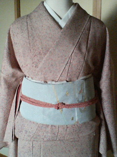 昨日の着物はこれ。最近ピンクは殆ど着ないので珍しがられました。『今日はカワイイねぇ』『たまにはそういう色もいいね』言われたけれど誰も似合うっては言ってくれなかった。(爆)