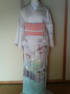 特に着る用事が出来たわけでもないのですが何となく単の訪問着を出してみました。合わせたのは暈しの綴。20年以上も前に母親が「こういう帯を一枚持っていると便利だから」と用意してくれたものです。どういうわけか、親が見立てた帯はどんな着物にもピッタリとはいかないまでも、変じゃなく合わせられます。本当に長い間お世話になっている帯が多い。着物が全体に模様があるので帯は無地っぽいものでと思ったのだけれど華やかさには欠けるかな?帯は近くで見れば金通しなので光ってはいるんですが。。。