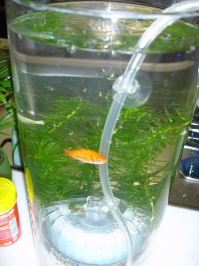 昨日の夕方のこと。旦那、何かの部品を買いにホームセンターへ出かけていったんですが、なかなか戻ってこない 夕飯の準備できてるのにぃ。仕方なく、先にビスケット君を散歩に連れていこうと準備をした時にやっと帰ってきて、「Hi, Honey ゴメンねぇ。パーツがみつからなくてさぁ。」 う--ん。 ちょっと怪しい。 この、ハ~~イ、ハニ~~~の口調が。 (ビスケット君とニズモちゃん)を別々に連れ出して戻ってくると、なんと旦那、今度はバスルームに鍵までかけて中でゴソゴソ・ガサガサしているではありませんか。 やっぱり、何かたくらんでいるねやっとでてきたと思ったら、「きみはここで少し待っててね」と玄関に追いやられたんです。 今度はどういうサプライズなんでしょう。「ハイ、いいよ。でも、まだ見ちゃダメ。」と言われ旦那の手で目をおさえられ。。キッチンに連れて行かれて・・・・。 「タラ----ン」 キッチンカウンターの上にコレが。 ↓ 旦那 「名前は”ヒル”だよ」 私 「ヒル? Hill???」旦那 「ヒル。 他の大きな魚のランチフィッシュ(えさ)だったからさ。 ランチのヒル(昼)」 それじゃ『ゴハン』でしょっ 私 「助けてあげたんだね」 ま、また・・・。旦那 「そう。」 かなり誇らしげ。。この水槽がわりに使っているのは、以前バレンタインデーに私がもらった花瓶。 ← お役にたてたようで。。。。 ・・・魚ちゃん苦手なのよね、私。旦那がちゃんと世話をしてくれますように。 それにしても、名前・・「ヒル(昼)」てのは。
