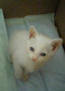 昨日の猫ちゃんの話ですが、おかげさまで、無事里親がみつかりました~旦那の職場のアメリカ人の女性が、彼女の旦那さんから了解をもらったとのことで。。 やった~~昨日の夜、さっそく連れて行きました。彼女のには、すでに猫ちゃん(♀)がいるそうですが、仲良くしてくれるといいな。よかった。 よかった~~。 元気いっぱい。 かわいかったなぁ~~~。 ちょっと大変だったけどっ