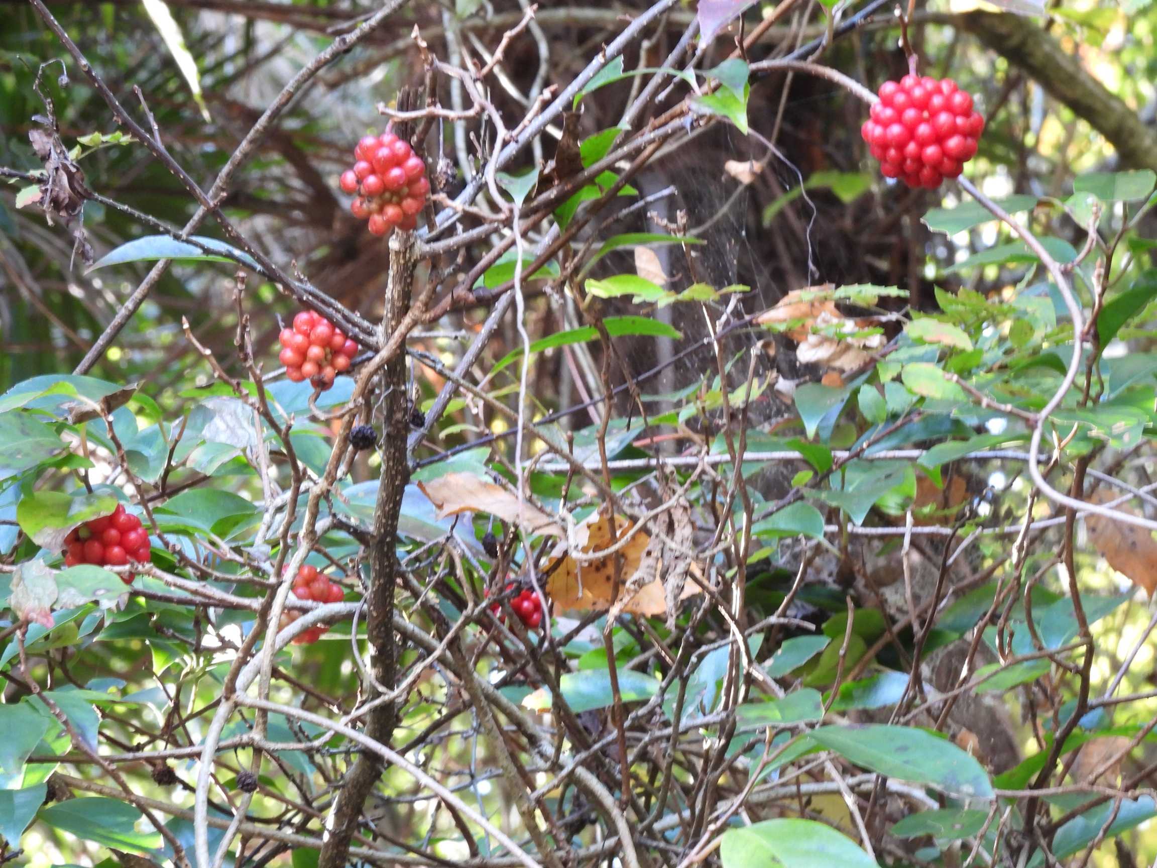 ビナンカズラ前回載せた時より赤くなったね~ヤツデ土曜日も良いお天気になる昨日の続で…