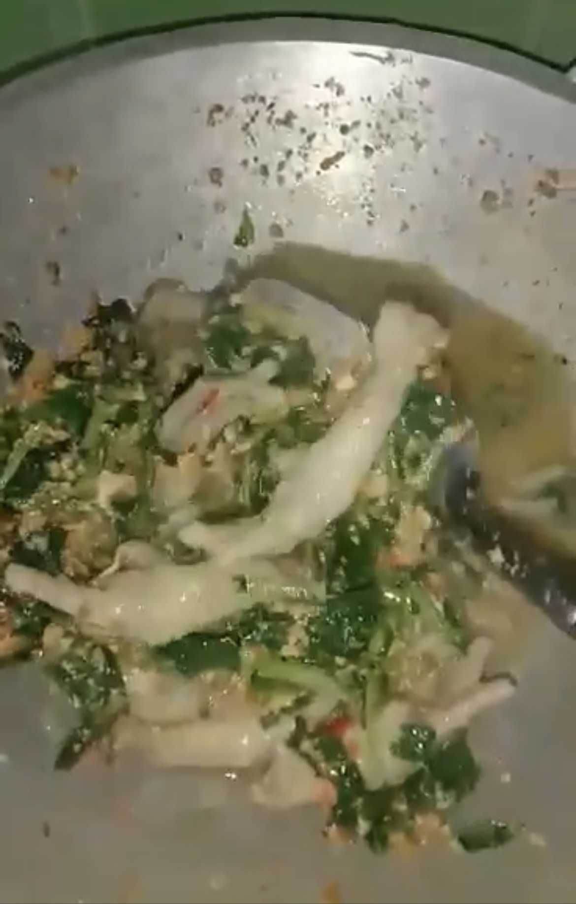 鶏の足とほうれん草を炒めます。