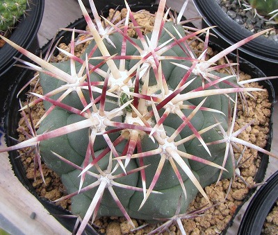 ☆北米原産の美花種、昨日の大白丸の流れから他のテロカクタス達の紹介です。Thelocactus heterochromus 紅鷹 拡大☆紅鷹☆別名「多色玉」と言うだけあって刺の色が面白いサボテン科随一の美花種ではないかと思います。 拡大☆鶴武者獅子頭か鶴巣玉の直刺と緋冠竜の疣の感じから良種の交配選抜種とおもわれる。 拡大☆大統領 薄べったい中刺の出かたが面白い、赤刺、白刺・五色大統領の品種があるが最近見かけないのは作り難いせい?植替えを怠るとこじれる。☆緋冠竜上の鶴武者?と交配して結実させたので今年は実生の予定 テロは種が大きいので実生は簡単な部類に入ると思います。 拡大☆天晃瘤状の稜が6角形?で端正に球体を包む刺とのバランスもお気に入りの品種。