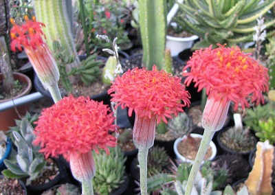 ☆サボテンのフライレア属を昨日に紹介した関係で今日は多肉版をアナカンプセロス属達もかってに種ができる仲間です。〈実生2年性〉 拡大☆アナカンプセロス 桜吹雪開花後数週間で白い種が出来る、直蒔きすればほぼ100%発芽する。 拡大☆アナカンプセロス 茶傘☆髭が生えているこの髭は葉からでは無く茎から出ているどういう訳か茶傘には種が付かない(管理が悪いせい?) 拡大☆髭アナカンの小型種 バエセケイこちらは親株の周りが子供だらけになっている。赤いちっちゃい花も姿に調和して良いもんです。 ☆大きいのは一昨年の発芽苗と去年の発芽苗かってに生えた子供を2.5号鉢に植替えした。☆うろこ系アナカン 最近アボニア属になった パピラケアこれでも、うろこ系では1番大型、塊根は出来ないタイプ。☆自花結実する去年種を蒔いて発芽したが途中で消えてしまった今年は途中で切断して発根管理中根がでてくれるか観察中です。 拡大 実生苗を植え替えた☆鱗状の葉っぱが細い茎にくっ付いている☆この属の特徴で茎が軟らかくくにゃくにゃしている・・・・・・小型の群蚕は毎夜姿を変えると言う温度変化のせいらしい。