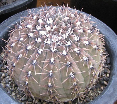 ☆オルテゴカクタス属の「マクドガリー」とオブレゴニア属「帝冠」はどちらも1属1種の特異サボテンです。見てやって下さい。 拡大☆マクドガリー灰緑色肌に黒刺、しぶ好みの品種3,5号鉢 拡大☆マクドガリー☆上の株より大柄のタイプ4号鉢。好きなサボの一つ。去年和歌山の展示即売会で購入。今年も出かけるつもりです。☆花は疣腋から出ている。コリファンタ属やテロカクタス属より 進化している?マミラリア属に至る途中の形体なんでしょうか。 拡大☆帝冠この株7cm程3.5号鉢。10~12cm位の大きさが限度?。☆上の株の横からの画像。松ぼっくりみたいな球体の疣に刺が刺は触ると脱落し易いので扱いに注意。 拡大☆古株の帝冠3.5号鉢☆こじれかけている。撮影のあと植替えしたがふっくらしてくれるかな。こちらも、牡丹類(アリオカルプスやロゼオカクタス)にいたる途中?。にほんブログ村