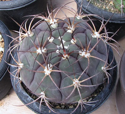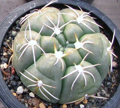 ☆ギムノカリキュウム竜頭、瑞昌玉、新鳳頭等の仲間。品種の学名はすべてGymnocalycium quehlianum (クエリアナム)ですので・・・・地域変種? 拡大☆クエリアナム(竜頭?)☆上の株は同一実生から出来たんですが雑種で品種名が特定できない。☆クエリアナム(黒刺鳳頭雑種)竜頭より大型で球形になるのが特徴の鳳頭との交配種。 拡大☆瑞昌玉・・・特徴の良く出た個体他に稜数の多い黒蝶玉もクエリアナムの仲間です。 拡大 拡大☆左・・・快竜丸。右・・・守殿玉両種の学名ochoterenaeは同じですので仲間です。快竜丸は稜の谷間が極浅く真っ直ぐなのが特徴です。☆バッテリーこの品種も色んなタイプがある。刺の太いスーパーバッテリーが最新種。☆青磁肌一本刺バッテリー(接ぎ降ろし苗)同期の正木苗は昇天してしまった。保険で接ぎ木したこの接ぎ降ろし株だけになってしまった。にほんブログ村