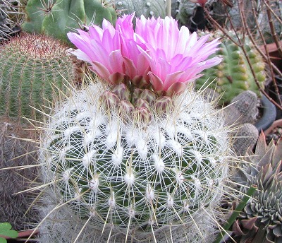 昨日の☆この蕾のサボテンは何でしょうかの答えはこれでした。Mammillaria herrerae マミラリアヘレラエ? 和名「白鳥」 拡大☆繊細な刺が球体を包む美種。蕾が出てきたピンク色の中輪咲き。 拡大☆上の株のアップ画像・・・・マクロで見ると刺は疣のアレオーレから放射状に出ている。それにしてもこの造形美は何のため、紫外線から身を守るため、光合成の邪魔では?。 拡大☆接ぎ降ろしの白鳥。3,5号鉢に植え替えした。☆上の株からの掻き仔を4つ外して2鉢に掻き仔挿しした1鉢です。------------------------明日はこの刺の持ち主を取り上げる予定・・・・・・・・・・・・・・・・・・・・・・・・・・・・・・・・・・・ --------------------------------ブログランキング★ガーデニング