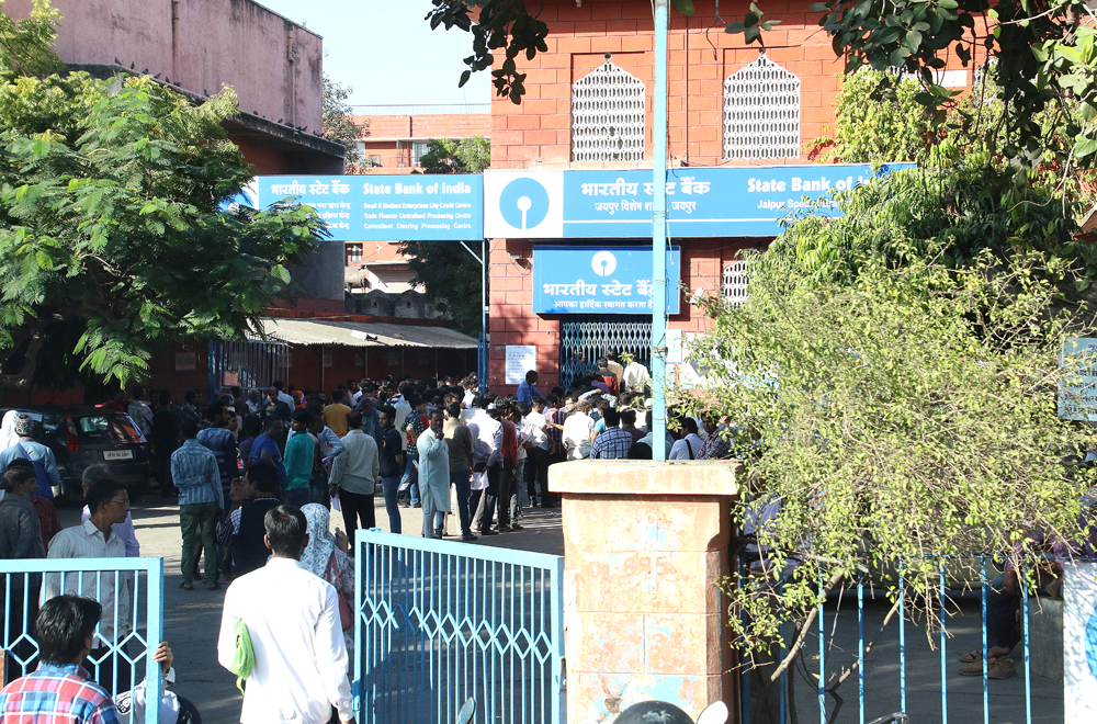 紙幣が無くなることで町中、どこの銀行を見ても黒山の人だかり。