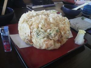 こんばんは、今日もお天気最高でしたね♪今日はですね~会社の新入社員の女の子二人を連れての外出です♪やっぱり最初ぐらい美味しいお昼でもご馳走してあげようとテレビでも有名な「ジャンボかき揚げ」を出している大洗の浜乃納屋さんに行って来ました浜乃納屋 茨城県東茨城郡大洗町大貫町前原下256-418 029-267-4277 営業時間 11:00~20:00 月曜定休ログハウス風店内の大きな窓から大洗の海を一望。絶景と共にいただく料理の味はもちろん、そのボリュームにも驚く。帆立貝や海老の旨みがそのまま凝縮された、磯の風味豊かな釜飯、いくら・うに・かにがてんこ盛りの『三色海鮮丼』が好評。直径約20cmの『浜乃ジャンボかき揚げ』は3人でも満腹に! (じゃらんより)これが噂の「ジャンボかき揚げ」1,200円大きさが分かるように隣にライター立ててみましたこれだけ大きいのに中までサクサクなのが凄い所今回は帆立釜飯、シラス釜飯、季節物の蛍いか釜飯(写真)蛍いか釜飯が1,000円、その他は800円なりその他にはあさりの味噌汁、海草味噌汁各400円を注文!味噌汁はお店のおばさんのアドバイスで量が多いので器をもらい、二人で1つを半分に(丁度いい量となりました)釜飯は出来るまでに30分ほどかかりますが、味がしみててとても美味しいです!海水浴場大洗サンビーチのそばで、マリンタワー、アウトレット、水族館と近くに有りますこれからのGウィーク、夏休みにどうですか?